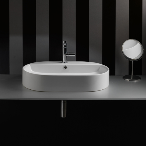 The 65cm basin is an indescribable, trendy, ovoid shaped bowl. It is the right furniture solution for bathrooms that, following the dictates of fashion in interior design, require countertop basins which sit on the surface of vanity units or cabinets produced from the most varied materials.