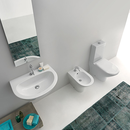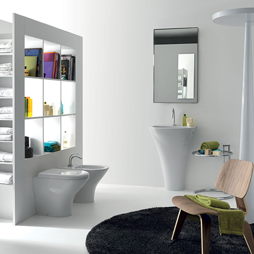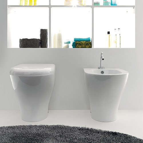 The surprising thing about this collection is the fact that the Aquatech bidet and all the bathroom fixtures of the Aquatech collection break the rules of design by featuring the exact opposite of what would normally be recommended. Their design is not logical because the ceramic block seems to lean forward: the front part widens downwards giving the impression that it is reaching for the floor, a truly remarkable visual effect.