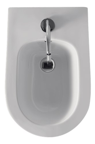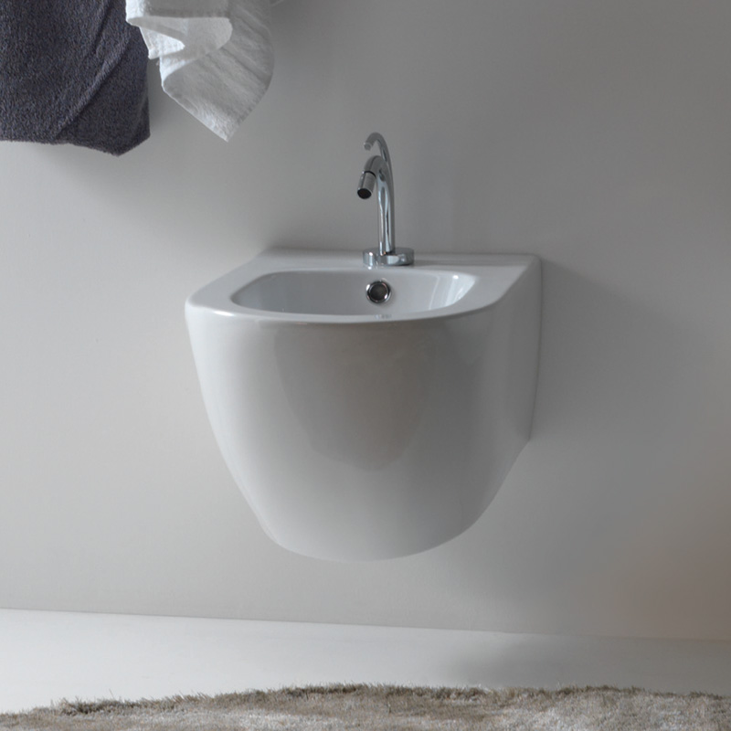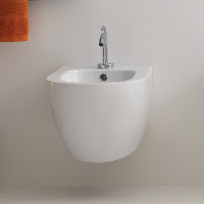 The design is very appealing: the generous roundness of the body corresponds to the straight and sharp lines of the upper edges. The profile has a lower section where the bidet is inserted into the wall: the lines show, therefore, an inclination opposite to what we are used to seeing, with a truly original aesthetic effect.