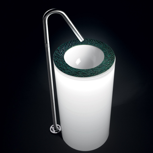 A Plexiglas framework with a round basin which radiates a seductive brightness which enhances the originality of the basin as a unique bathroom feature.