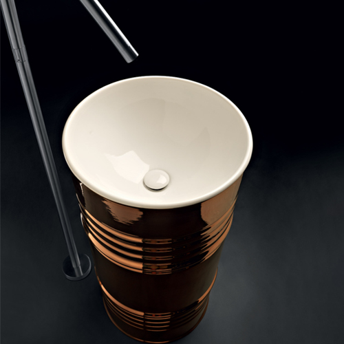 The Artwork Barrel freestanding basin (floor outlet) can be customised on request thus becoming a unique interior design item. All finishes are applied with manual processes that enhance Italian craftsmanship and style.