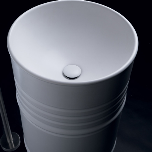 In addition to being a freestanding basin, the Barrel can be turned into a heater (7591 sold separately) or any other piece of furniture that the imagination can inspire. With its innovative shape, it can transform the bathroom for those who love following the trends of home decor.