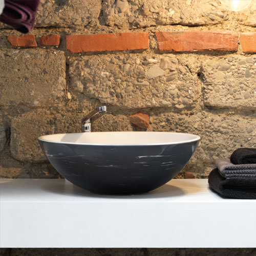 This basin has a rather unusual shape: in fact, it’s a bowl! In other words, it is circular and concave so that it can contain a large quantity of water. The fact that it has no edges is a further added value: no edges means, and the proof is in the pudding, that cleaning and maintenance operations will be simplified, and that it will hardly become stained by lime scale or other kinds of encrustation.