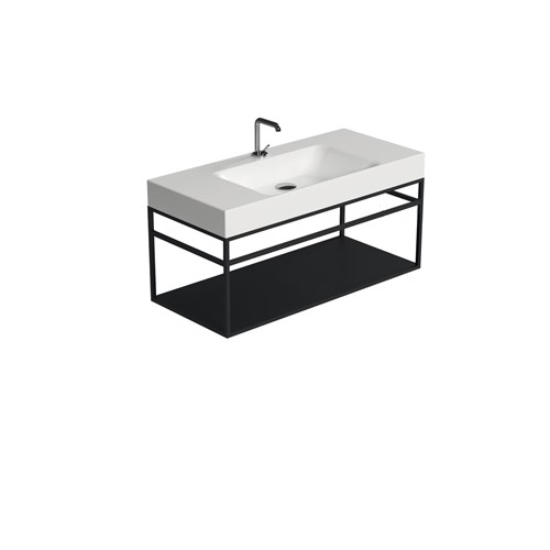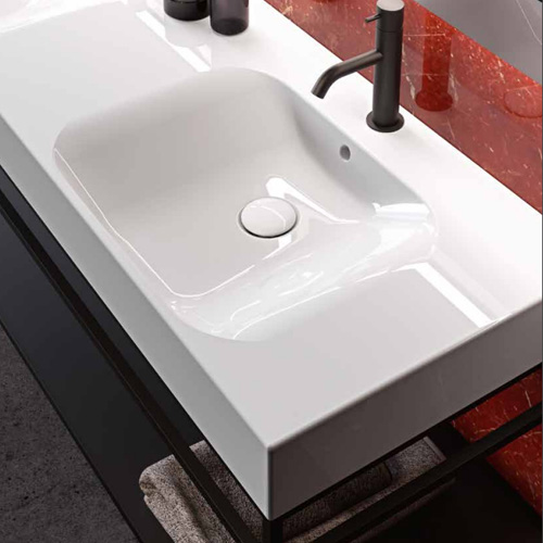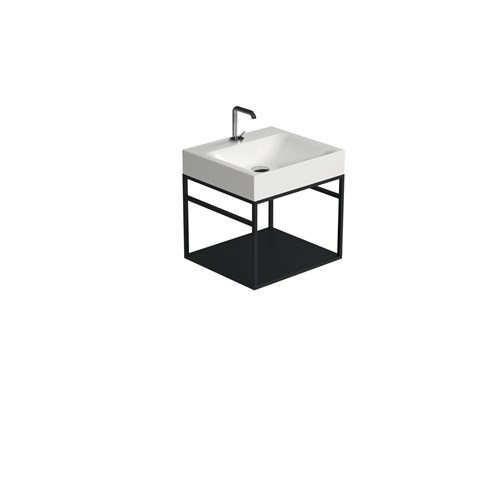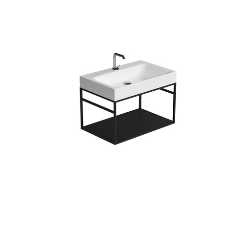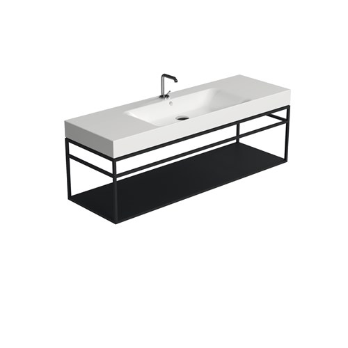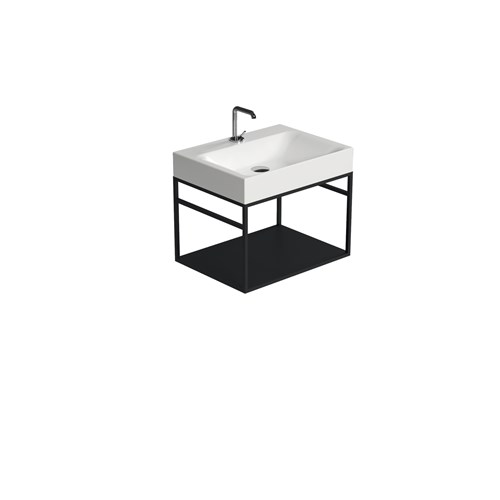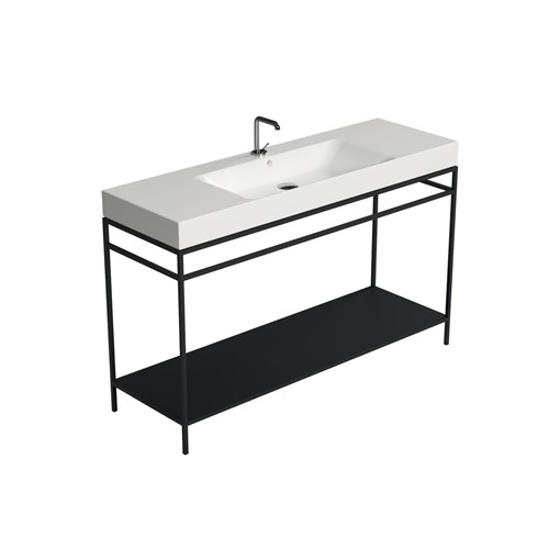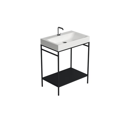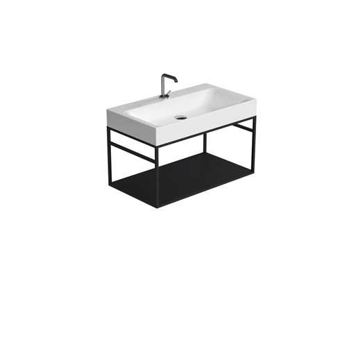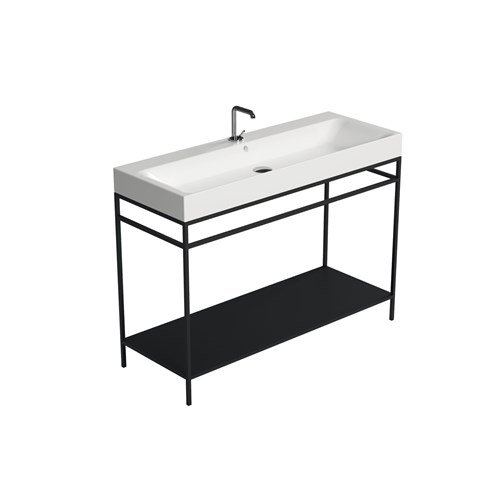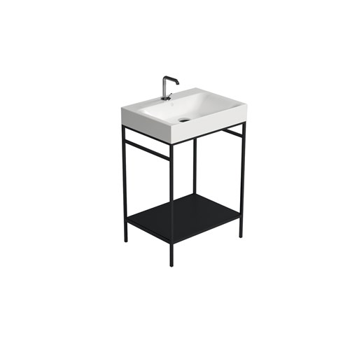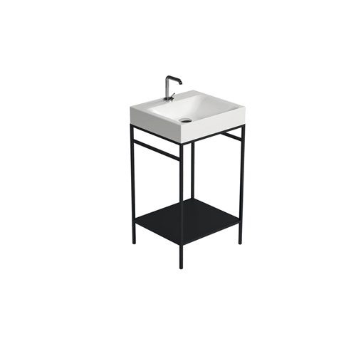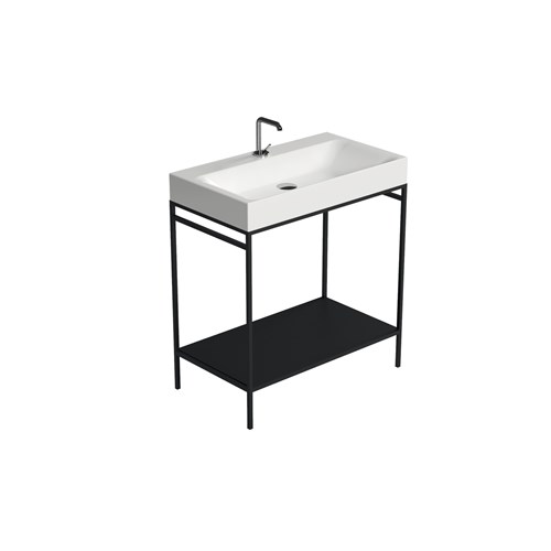 The Cento steel wash stand has a clean and simple outline that gives it an extraordinary elegance. Thanks to this matt black steel wash stand on which the Cento basin is placed, it offers a perfect space-saving solution to make better use of the space especially in small bathrooms. The set can be considered an all-in-one product that allows you to have a comfortable towel rail on both sides thanks to the lower bar of the framework under the basin and a large shelf which is a very useful support surface to store bathroom linen or many other small accessories including toiletries.