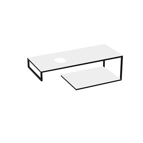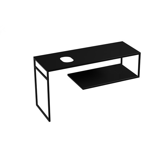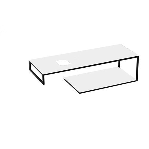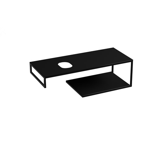 Available as a wall hung unit or a floor standing unit in 3 different sizes: 100cm, 120cm and 140cm and with a choice of matt black stainless steel with black stoneware worktop and shelf or matt black stainless steel with white stoneware worktop and shelf. Two cut-out countertops are assembled to ensure maximum ease of installation and a support surface.