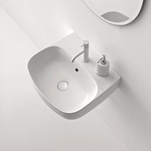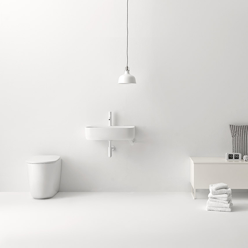 The Nolita 50cm basin, with its simplicity, can enhance bathrooms in which mosaics or wall tiles with geometric patterns prevail or where decorations inspired by enamelled Spanish or Italian tiles are predominant, especially if these tiles are dark in shades. It can be a valuable furnishing solution that provides a striking contrast of colours. The essential lines of this basin suit the contemporary and minimalist design very well, but also the Northern European style in which natural shades predominate, or, additionally, a total white interior decoration.