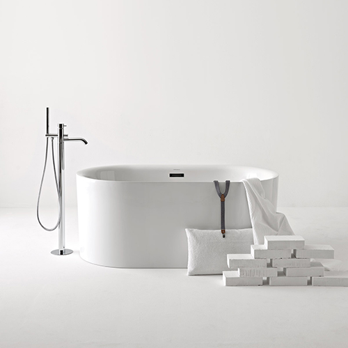 The company from Civita Castellana offers a freestanding bath shower mixer tap with a simple and elegant architectural form. In recent times, interior designers like positioning the bath in a less traditional position, which is not necessarily flush with the wall but, for example, in the centre of the bathroom or of a room specifically designed for housing it. Following this trend, the Nolita freestanding bath shower mixer tap becomes the central attraction of a truly striking relaxation area.