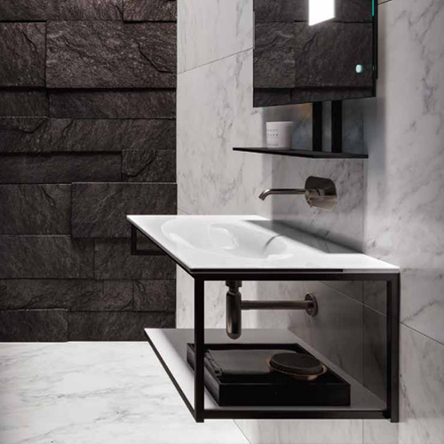 This Shape basin is available in two sizes: 102cm x 52cm and 122cm x 52cm making this a versatile product for a range of spaces. With three different finishes: white, matt white and matt black, and the option of one tap hole or three tap holes, there is a Shape basin for every style.