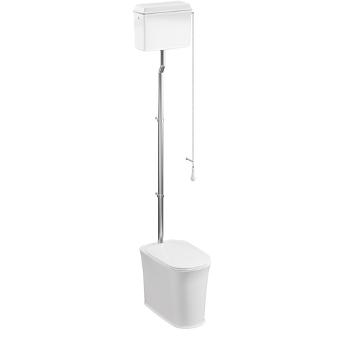 Part of The New Yorker Collection from Kerasan, this high level toilet, which includes the toilet pan, cistern, flush pipe and cistern fittings, has an industrial style with the contrast of the glossy or matt finish against the metal of the flush pipe.