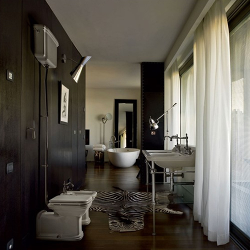 Made of high-quality vitreous china, the Waldorf ‘Prolungato’ high level toilet has a unique feature that distinguishes it from the most common and widespread toilet bowls made in the bathroom furnishing industry: it has a posterior extension because it was designed to ensure an elegant and refined cover to the water pipes that connect the toilet to the wall.