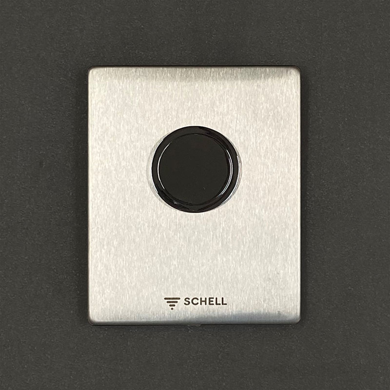 - Polished Chrome Push Button with Brushed Stainless Steel Plate