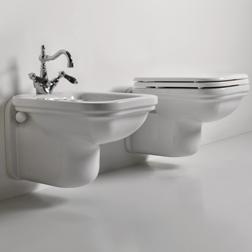 The Waldorf wall hung bidet is a bathroom fixture of extreme refinement that, with its rectangular shape softened by rounded corners and double-thick edges, creates a dreamy atmosphere of the past in any bathroom.