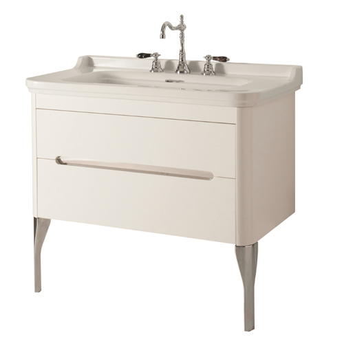 For a sophisticated and original bathroom, the 100 cm Waldorf basin with its wall mounted cabinet is an ingenious solution for furnishing bathrooms with a touch of classic stylistic notes mixed with high performance and the remarkable Italian quality. This product is part of the Waldorf collection, a result of the creativity of Massimiliano Cicconi who wanted to bring back to contemporary style bathrooms the aristocratic image of sanitary ware which was installed in the famous New York Astoria Hotel in the 1890s.