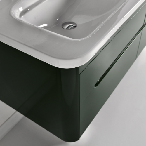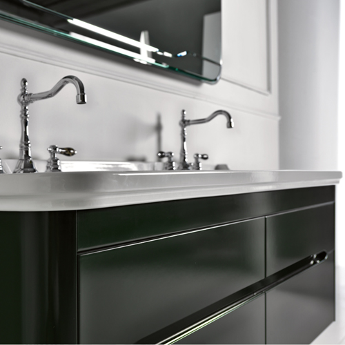 Suitable for furnishing medium or large private bathrooms or public toilets. The Waldorf wall hung cabinet for double basin has large compartments for storing bathroom accessories and features fine, clean lines. Its wooden structure, while maintaining a vintage style, acquires a more modern connotation thanks to the wall installation and the absence of handles. Waldorf bathroom furniture has roomy drawers placed in its upper section and compartments with practical drop-front doors in the lower area.