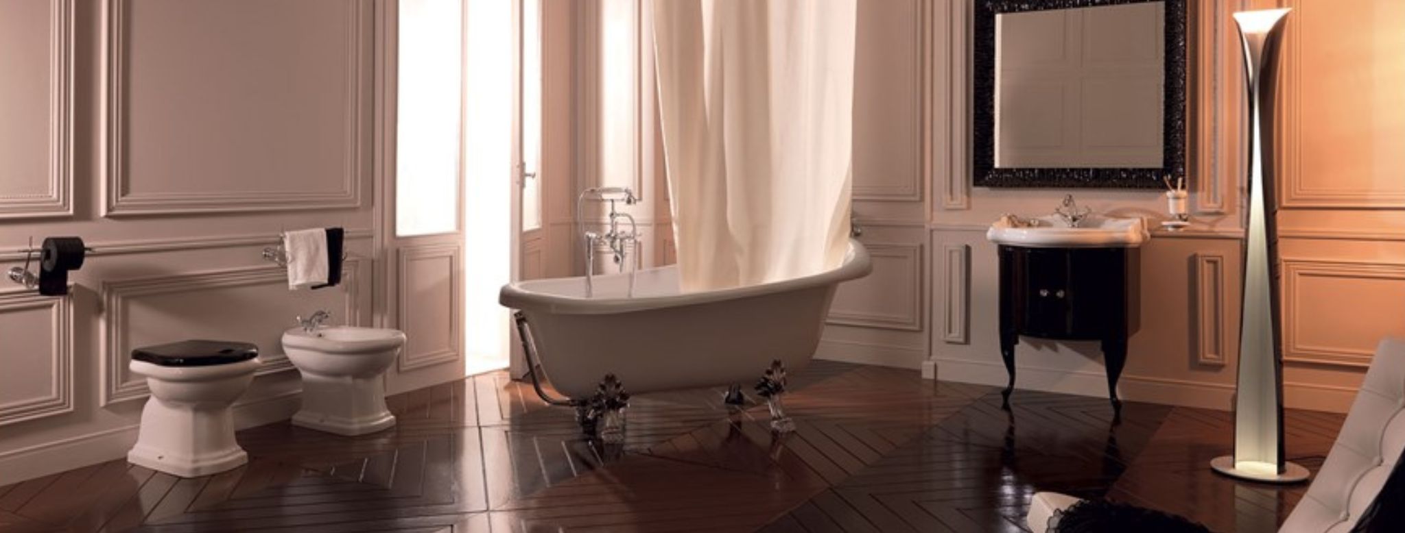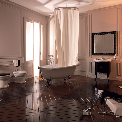 Ceramic takes center stage in the Retro collection, a vintage-inspired line designed by Alfredo Anzellini and Massimiliano Cicconi. With its elegant, traditional shapes, the Retro collection brings a sense of nostalgia and class to bathrooms meant to stand out. Drawing on the charm of the past, the collection blends soft, romantic lines with advanced technical features, making it an excellent choice for modern bathroom design. It includes everything from bathroom fixtures and furniture to bathtubs and accessories.